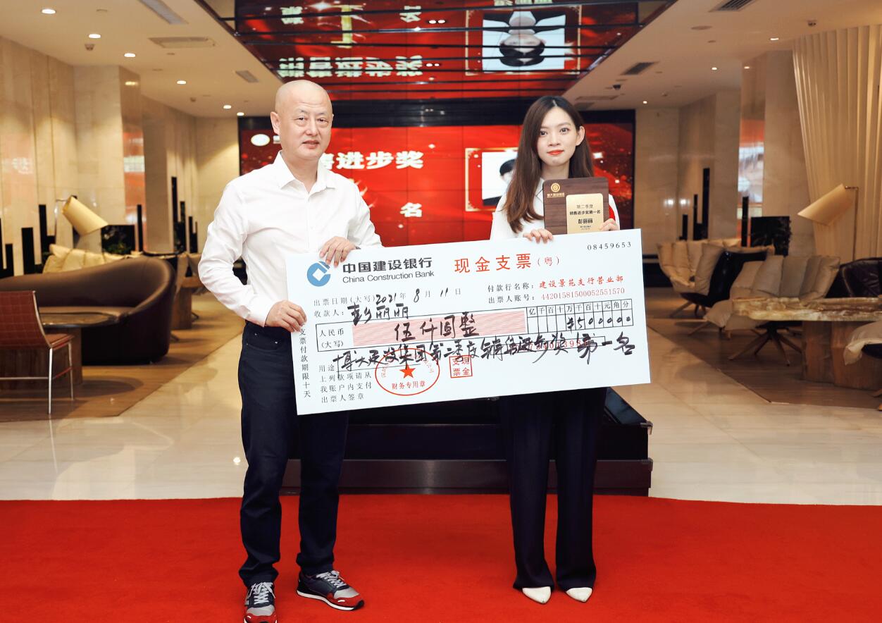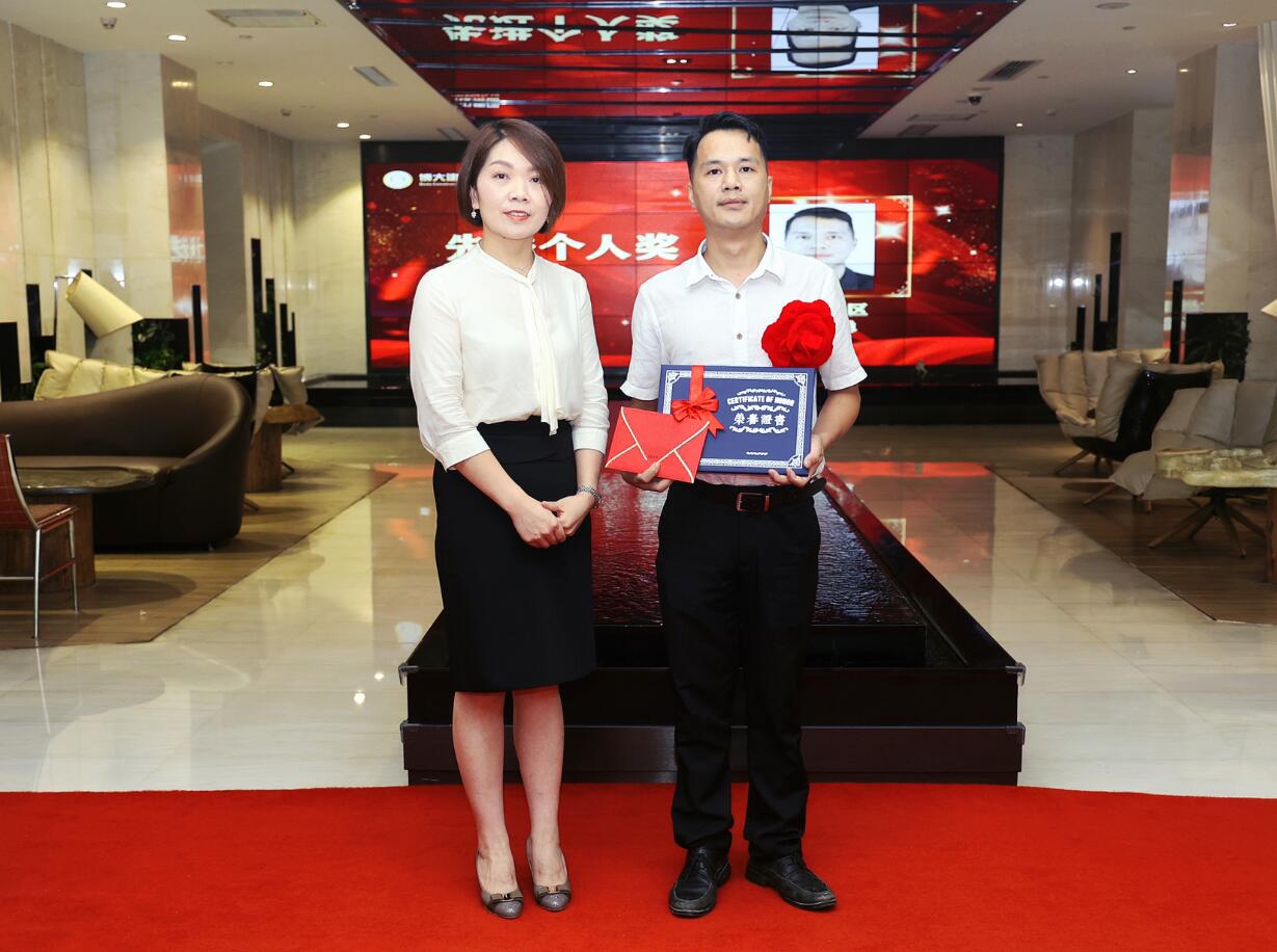 集團董事、常務(wù)副總裁沈雁飛為銷售進步獎獲得者彭麗麗頒獎