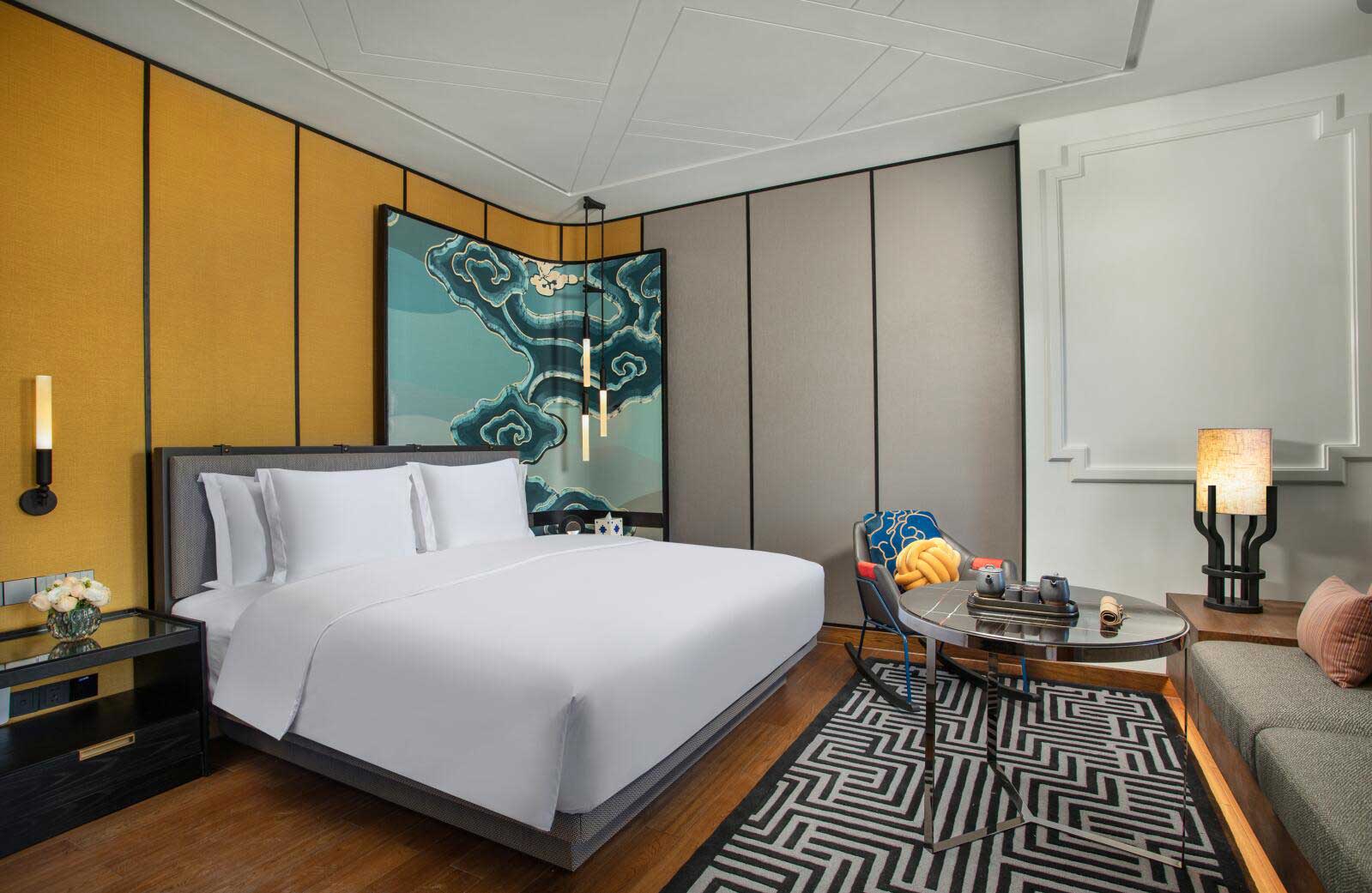 酒店設計由備受贊譽的泰國設計事務所P49 Deesign操刀,以尋找夢想中的“香巴拉”“月光城”為靈感素材,用藏式傳統風格進行現代簡約素凈演繹,為賓客呈現高原藏式鄰里文化。