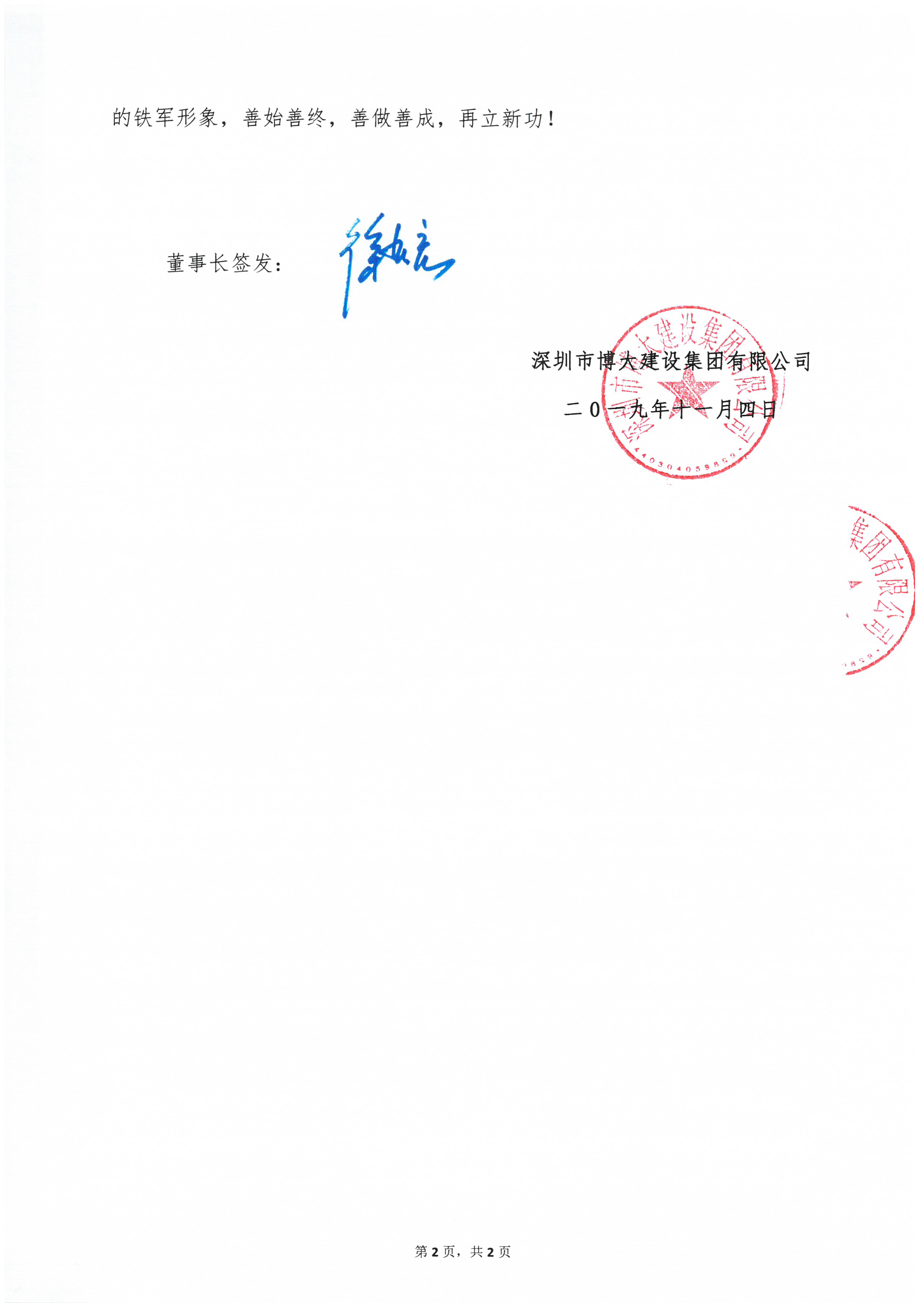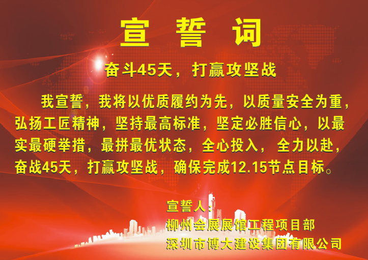 “我將以優質履約為先,以質量安全為重;弘揚工匠精神,堅持最高標準,堅定必勝信心;以最實最硬舉措、最拼最優狀態;全力投入、全力以赴;奮戰45天,打贏攻堅戰,確保完成12.15節點目標!”