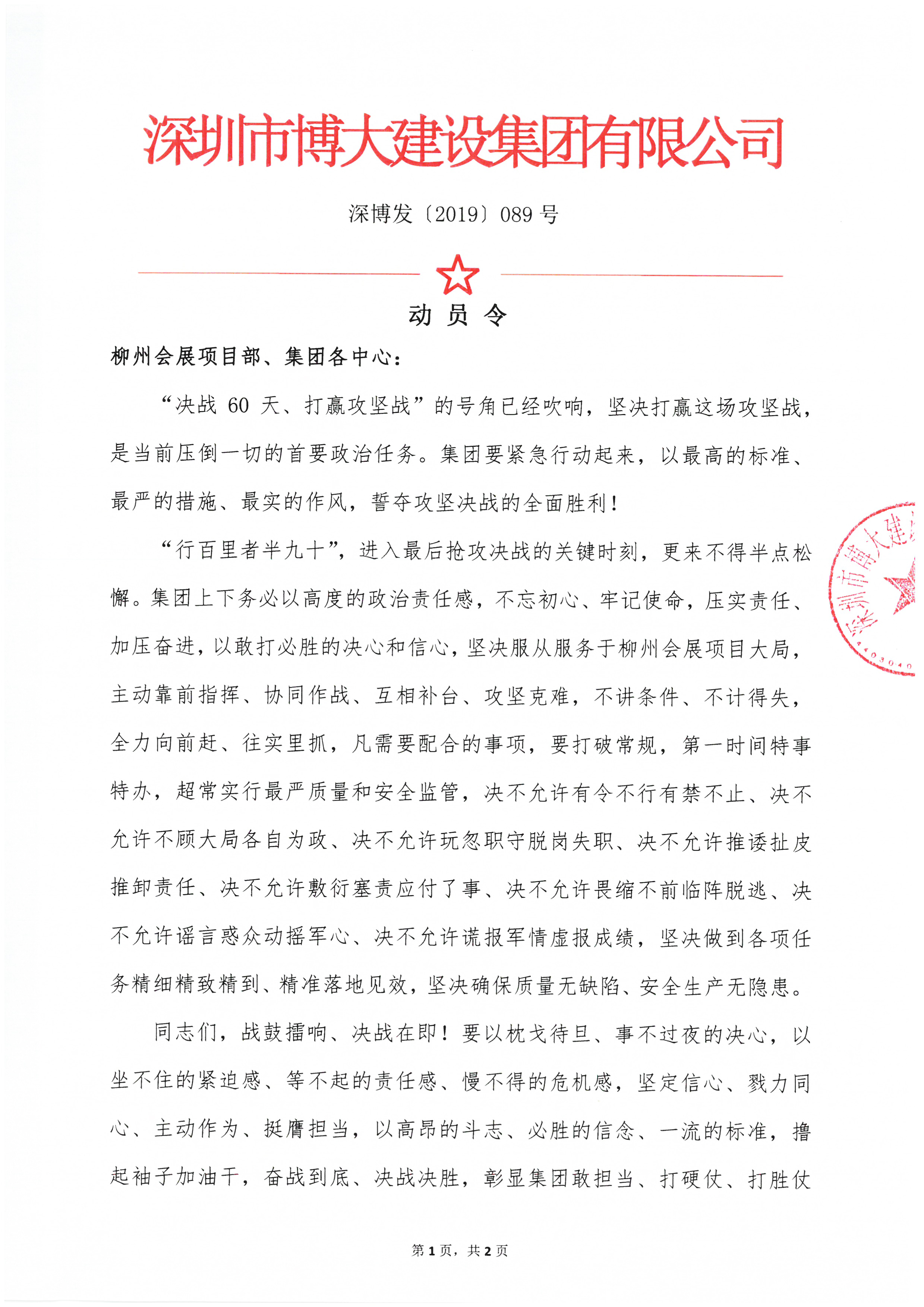 奮戰45天,博大鐵軍誓言打贏柳州會展項目攻堅戰——中國-東盟(柳州)工業品展示交易中心項目部舉行攻堅誓師大會