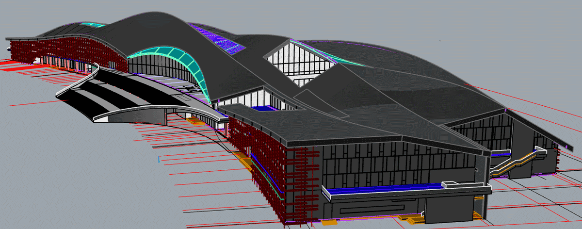 本工程結構設計造型較復雜、幕墻體系層次復雜,博大配備高素質的幕墻深化設計團隊,應用三維建模及BIM管理平臺進行幕墻系統空間碰撞檢測,全力保證施工質量和效率。