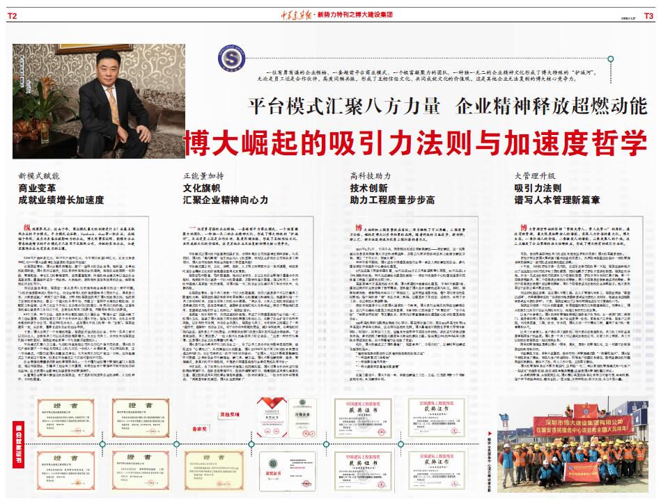 為更全面地介紹博大的發(fā)展經(jīng)驗(yàn),《中華建筑報(bào)》第2982期以特刊的形式,通過四個(gè)版面詳細(xì)講述“博大崛起的吸引力法則與加速度哲學(xué)”。全文摘錄如下,以饗讀者。