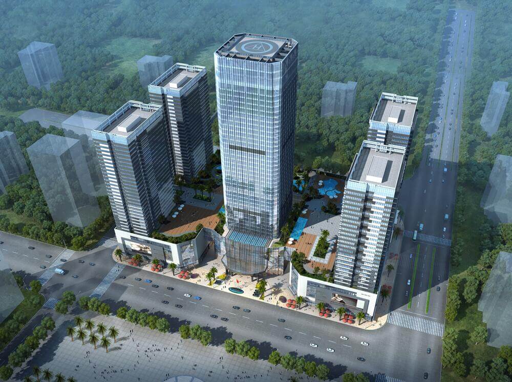 170米高度,普寧國際商貿(mào)中心位于廣東省普寧市,幕墻面積13.5萬平方米。項目采用了玻璃幕墻、鋁板幕墻、石材幕墻、鋁合金門窗、雨篷等。
