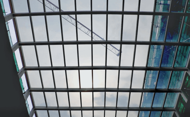 144塊玻璃、一塊400多斤,在接到甲方的施工要求后,博大僅用一天半的時間,便在高達15米的屋面完成調光玻璃幕墻的安裝。