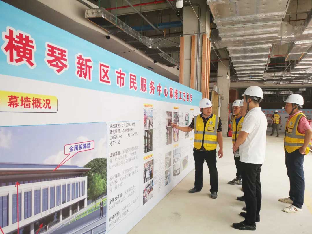 8月31日下午,中建三局南方區域組織旗下100余名管理人員前往珠海橫琴新區市民服務中心建設項目觀摩學習,博大建設集團作為幕墻方向的施工單位,詳細向觀摩團展示博大幕墻的新科技、施工工藝工法和最終呈現效果。