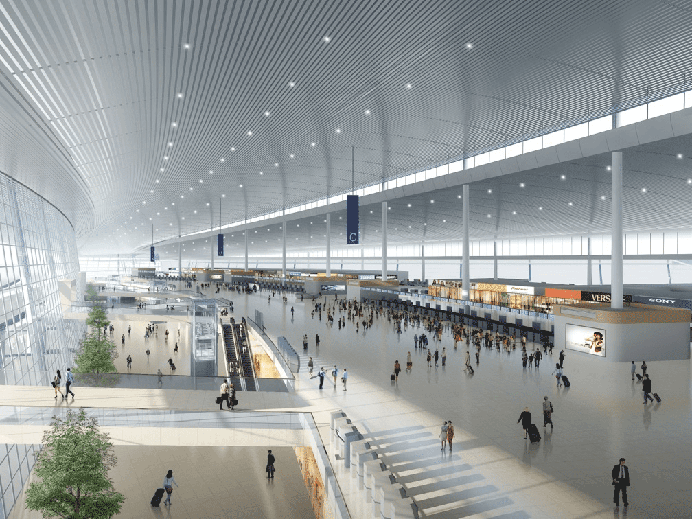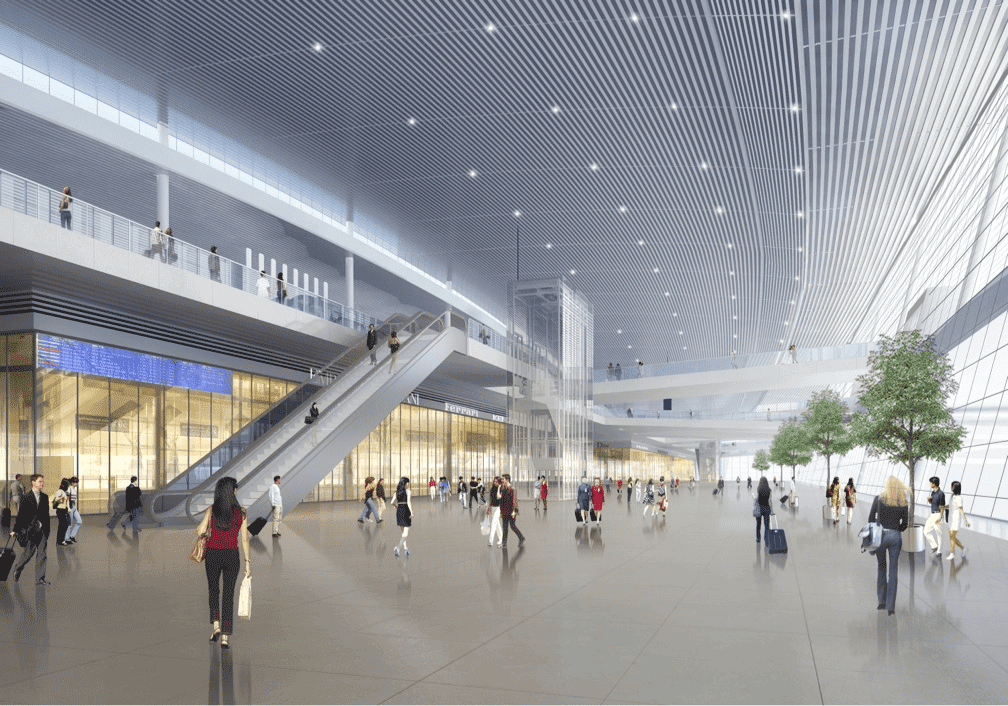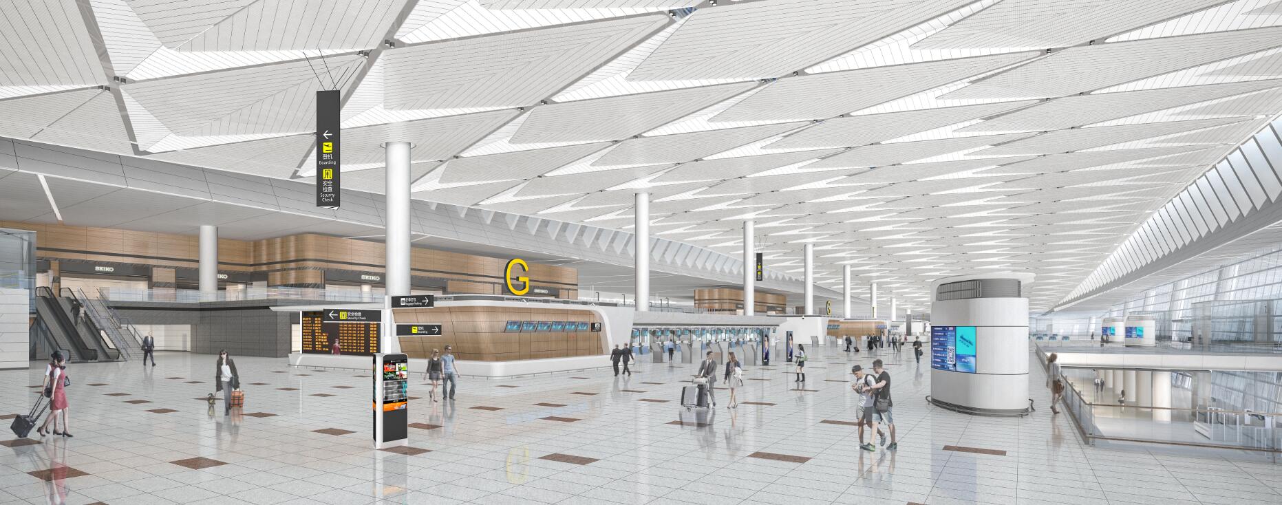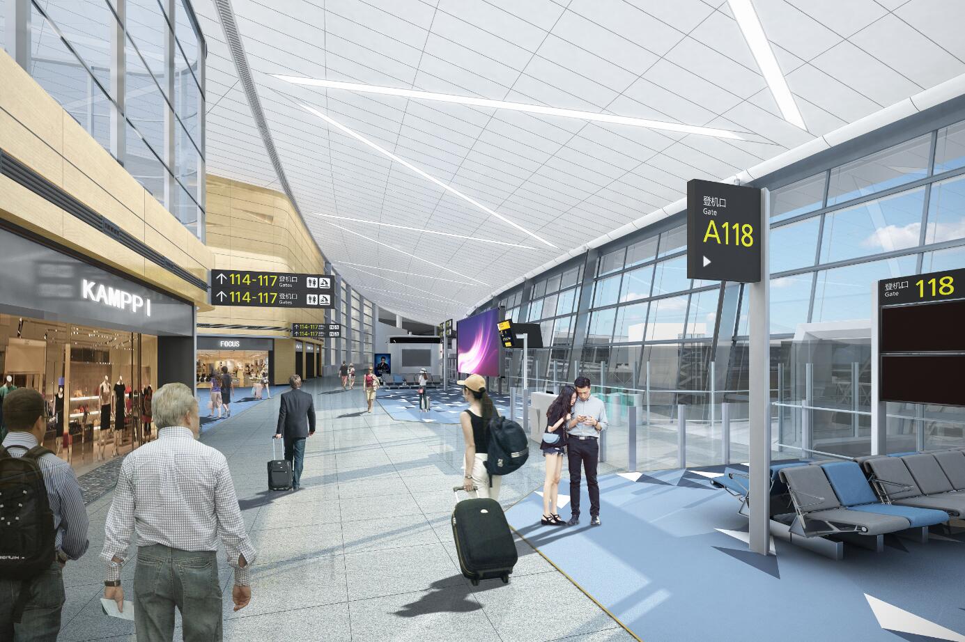 博大承建范圍涵蓋T2航站樓L2層到達迎賓廳、行李大廳、APM站臺、遠機位到達及旅客區(qū)域;L1層國內(nèi)遠機位出發(fā)的精裝修工程及部分安裝工程施工等。